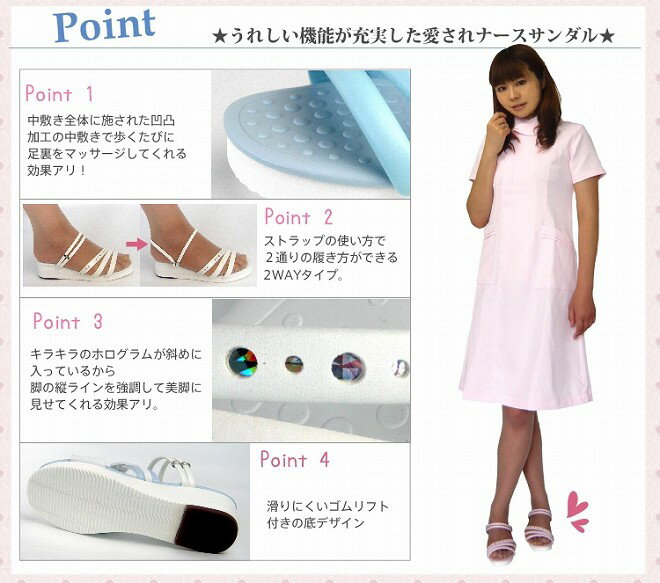 センターハート2wayエアソールサンダル[ナースサンダル/オフィスシューズ/オフィスサンダル/ナースシューズ/キクスイ]