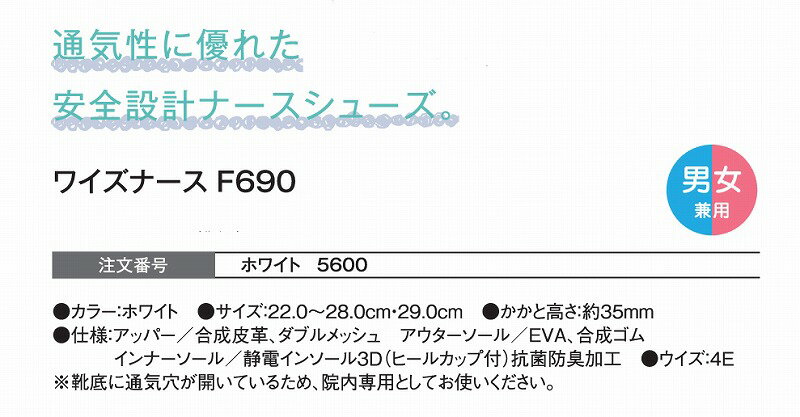 【ワイズナース(男女兼用)】・F690・ナースシューズ・ナースサンダル・ナースシューズ・作業用シューズ・事務用シューズ・メンズナースシューズ・メンズシューズ・