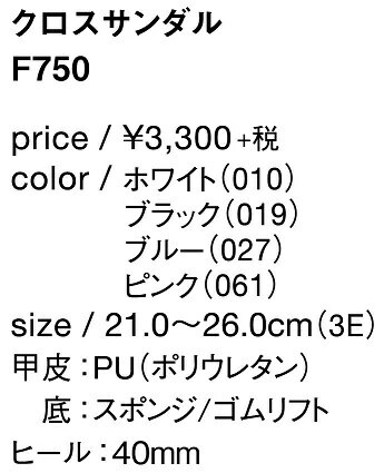 【クロスサンダル】【ホワイト/ブラック/ブルー】F750・ナースシューズ・ナースサンダル・事務用サンダル・作業用サンダル・作業用シューズ・事務用シューズ・