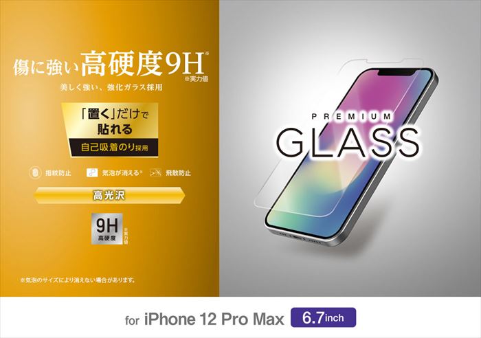 【代引不可】iPhone 12 Pro Max 液晶保護ガラス 高光沢 指紋防止 傷に強い 高硬度9H エアーレス 飛散防止 エレコム PM-A20CFLGG