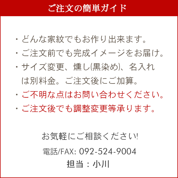 ◆ご注文方法◆ ・ご希望の家紋名を選択肢欄にお書きください。