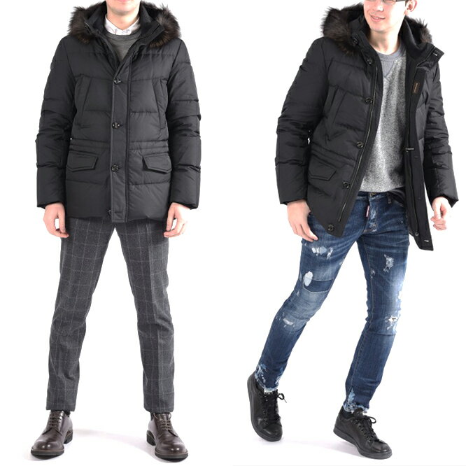 【クーポンでさらに5%OFF】MOORER ムーレー PHILIP KM ファー付 フード ダウン コート ジャケット パーカー ブルゾン メンズ 秋冬 ブラック 黒 XS S 3XL 4XL/イタリア ブランド アウター 大人 ビジネス【送料無料】
